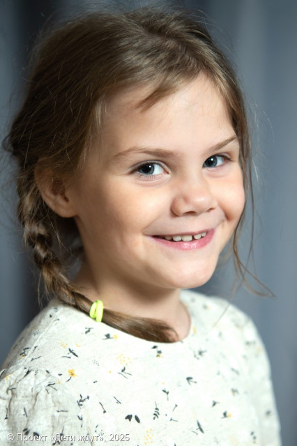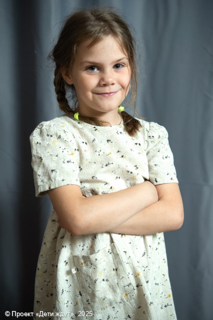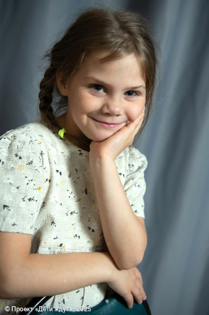 Таисия — добрая, милая и ласковая девочка. Она легко идет на контакт, ведет себя открыто и доброжелательно. Девочка тянется к взрослым, любит индивидуальное внимание. Она любознательная, с интересом познает окружающий мир, участвует во всех праздниках и мероприятиях учреждения, принимает участие в постановках и отлично поет. Таисии нравится играть в куклы, в сюжетно-ролевые игры с другими детьми. Она уже учится в начальной школе, на уроках ведет себя активно, внимательно слушает задания и старается все делать правильно. Ей нравится рисовать, раскрашивать, делать аппликации и поделки, плести из бисера, а также смотреть мультфильмы и слушать музыку. Она легко вовлекается в подвижные игры, любит играть на детской и спортивной площадках. В быту Тася самостоятельна и опрятна, старается содержать комнату в чистоте, убирать за собой игрушки.